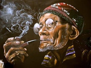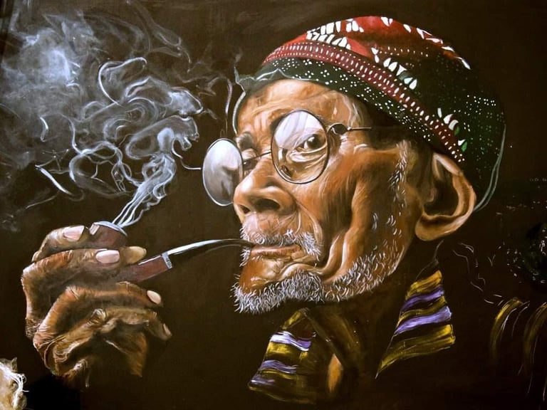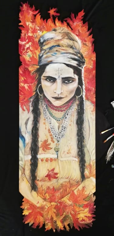 Techniques mixtes: Huile, crayons, acrylique, marqueurs, gravure sur bois