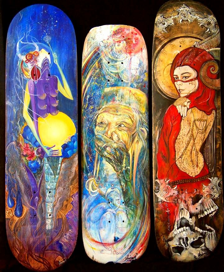 Peintures sur skateboard.