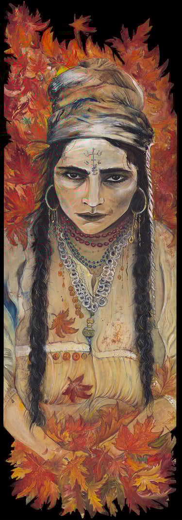 Techniques mixtes: Huile, crayons, acrylique, marqueurs, gravure sur bois